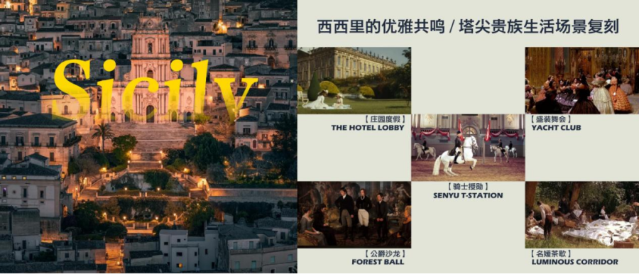 设计团队以西西里度假湾区为蓝本,将自然景观与贵族生活场景融入社区规划——从阿尔坎塔拉峡谷风格的酒店大堂,到埃特纳火山灵感的森林宴会厅,再到如土耳其阶梯般的游艇会所,业主将体验“Nature × Nobility”(自然×贵族)相结合的沉浸式居住氛围。