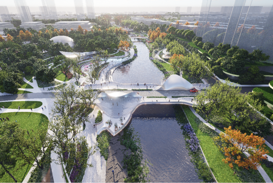项目建设与十五里河段的河道景观改造同步推进,强调建筑与自然的水岸对话。此次公开的河道改造效果图,是项目“滨水生活”属性的关键支撑,改造后的河道将更具沉浸互动体验感知,也能与 09、08地块形成景观联动,真正让“国际湾区”与“滨水生活”成为项目的融合基底。