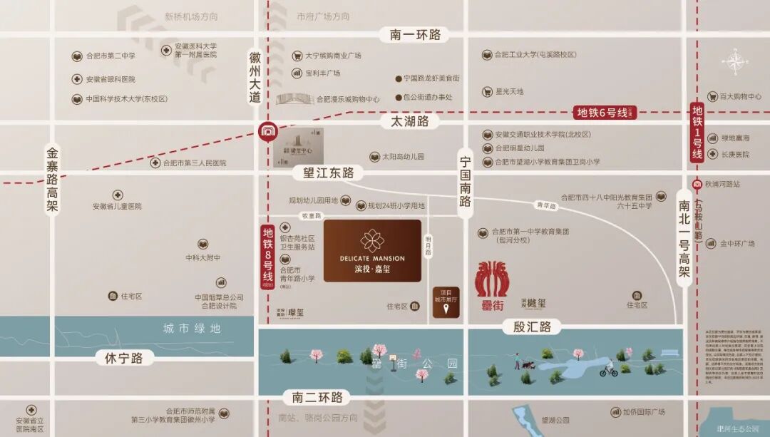 日常出行上,通过地铁6号线(一期年底通车)、8号线(规划)双地铁,以及徽州大道、宁国路等城市主干道,也能轻松到达合肥各个区域。