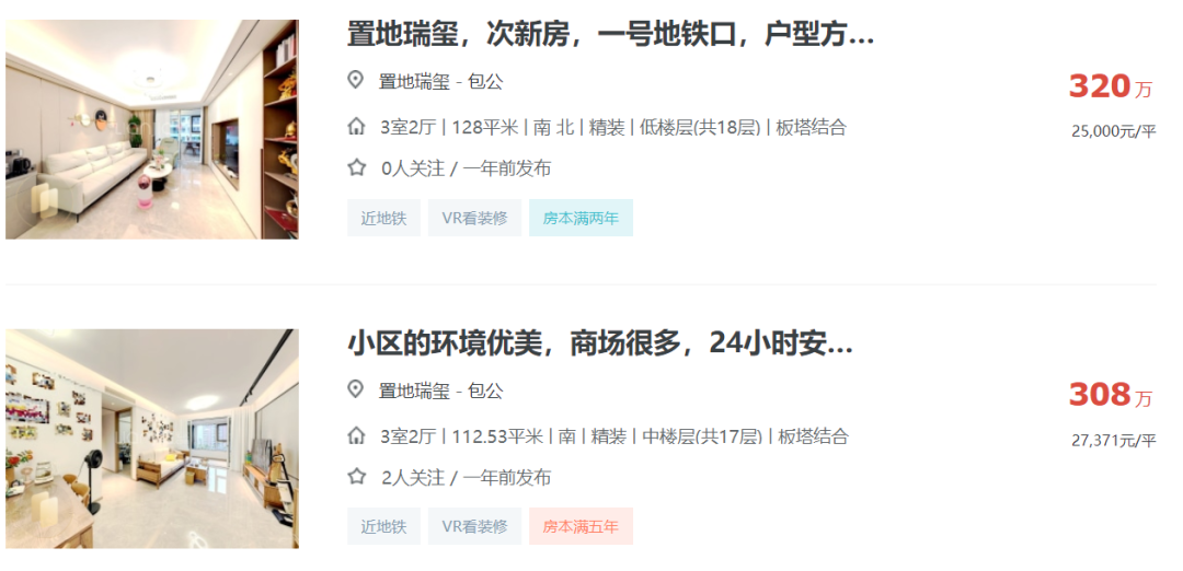 对比周边二手房,如置地瑞玺,交房已超5年,二手房挂牌价依旧突破了2.5万/㎡。