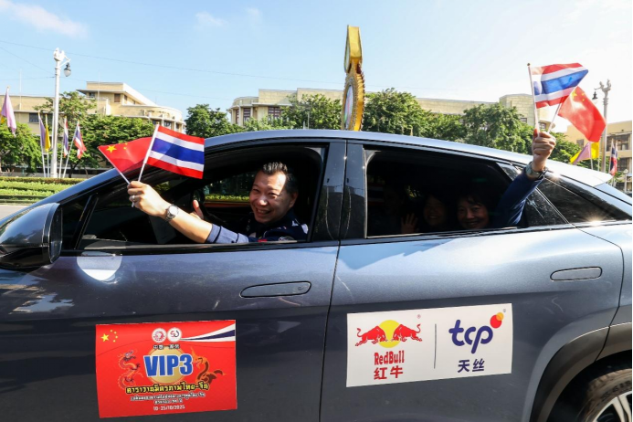作为庆祝中泰建交50周年的标志性活动,此次友谊车队将开启5000公里跨国行程,从曼谷出发,经泰国彭世洛府、磨憨—磨丁中老边境口岸进入中国,途经西双版纳、昆明、贵阳、张家界、西安和平遥等地,最终抵达北京,全程16天。在天丝集团、比亚迪等中泰龙头企业组建的“赞助联盟”支持下,上午8时15分许,友谊车队依次缓缓穿过拱形气球门,现场工作人员向参与者递上纪念礼品,车上游客挥舞中泰国旗,气氛热烈。车队随后经过大皇宫、唐人街等曼谷地标,并在沿途合影留念,在跨越山海的征程中为两国民间交流写下生动注脚。